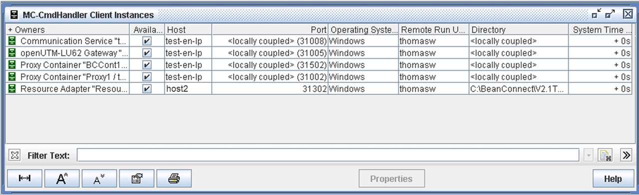 You can use the Management Console to check the availability of an MC-CmdHandler client instance. To do this, click the corresponding node at the topmost level and choose the Show MC-CmdHandler Client Instances command in the context menu to open the MC-CmdHandler Client Instances panel.