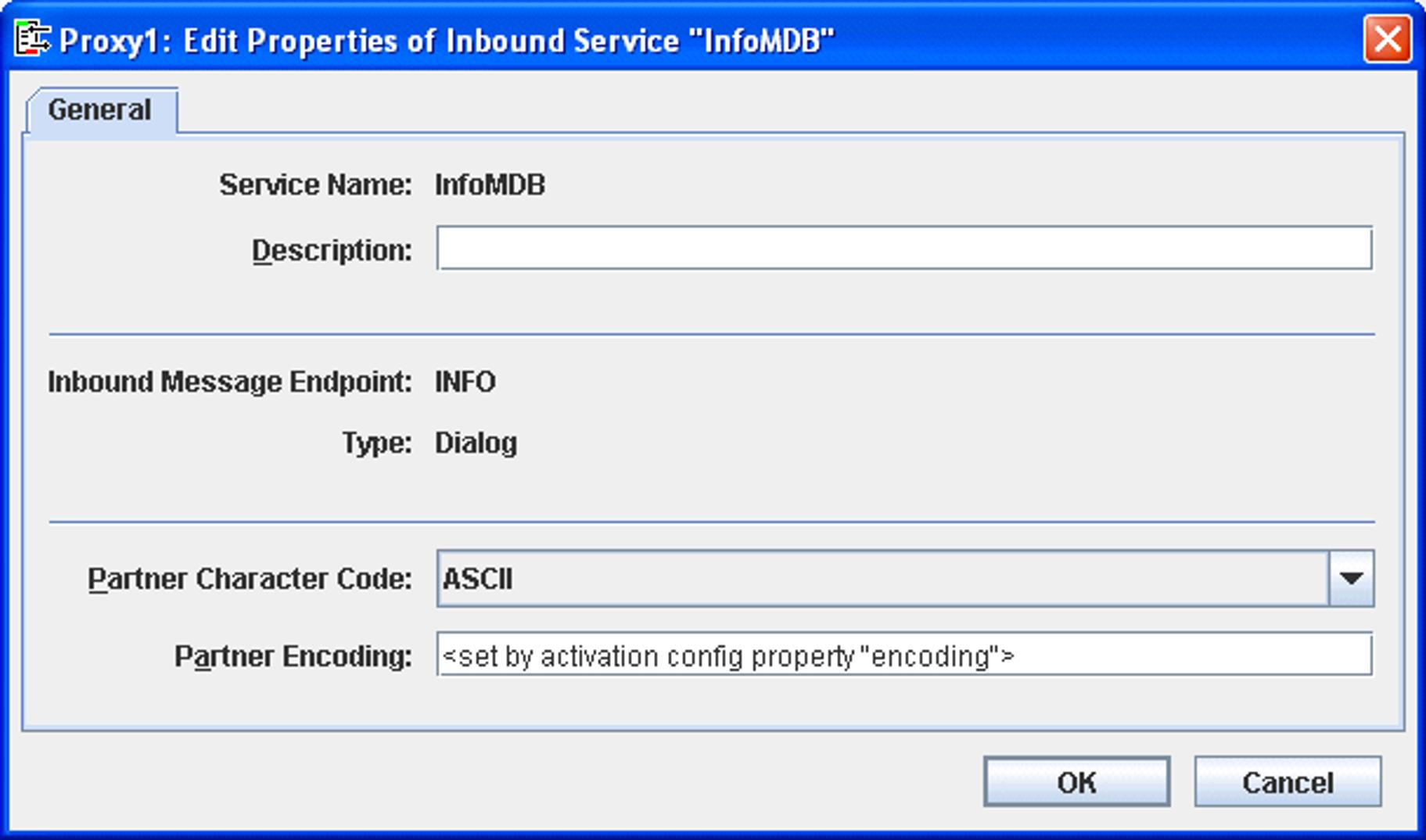 Name of a code table for converting byte code (e.g. EBCDIC) to Java Unicode. If you specify a code table here, the following values are overwritten in the deployment descriptor of the message-driven bean:
