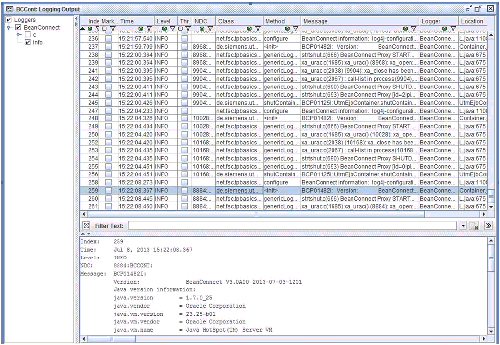 If a Filter Mask is entered in the Logging Properties dialog box, only the messages that contain the filter text in at least one column (a distinction is drawn between uppercase and lowercase).