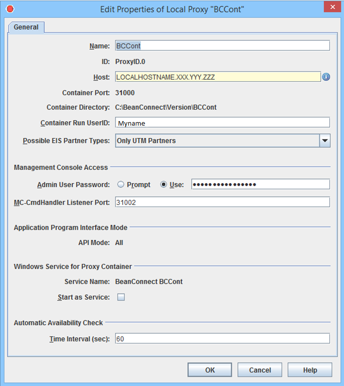 In the case of local proxies, please note that in certain situations, e.g. if the proxy container's MC-CmdHandler has not been started and this MC-CmdHandler's listener port has not been assigned to the proxy then the system uses the "internal" MC-CmdHandler which runs in the Management Console process and operates without communications. In this case, the user ID specified here must match the user ID under which the Management Console itself was started.