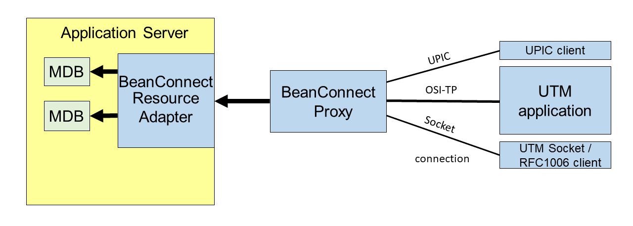 - UTM socket client or RFC1006 application: non-transactional communication via the UTM socket protocol or RFC1006 protocol (dialog and asynchronous)