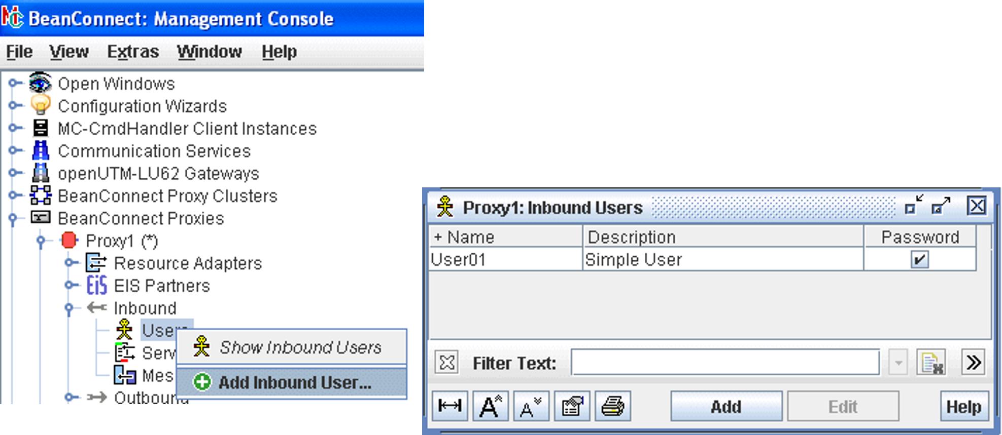 You access the user entries via the Users node which is located below the Inbound node in the proxy subtree.