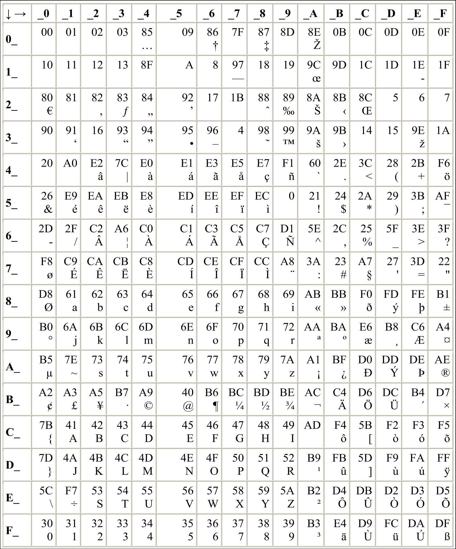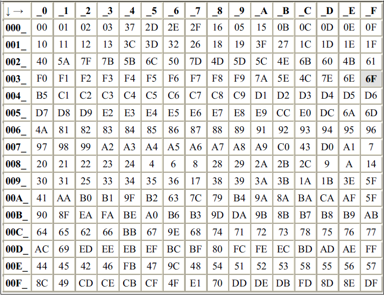 the x and y axes indicate the relevant 1-byte EBCDIC code