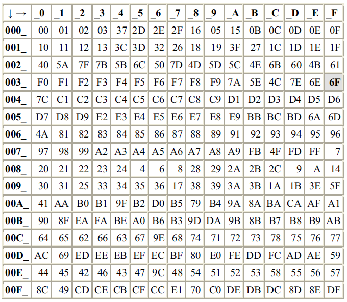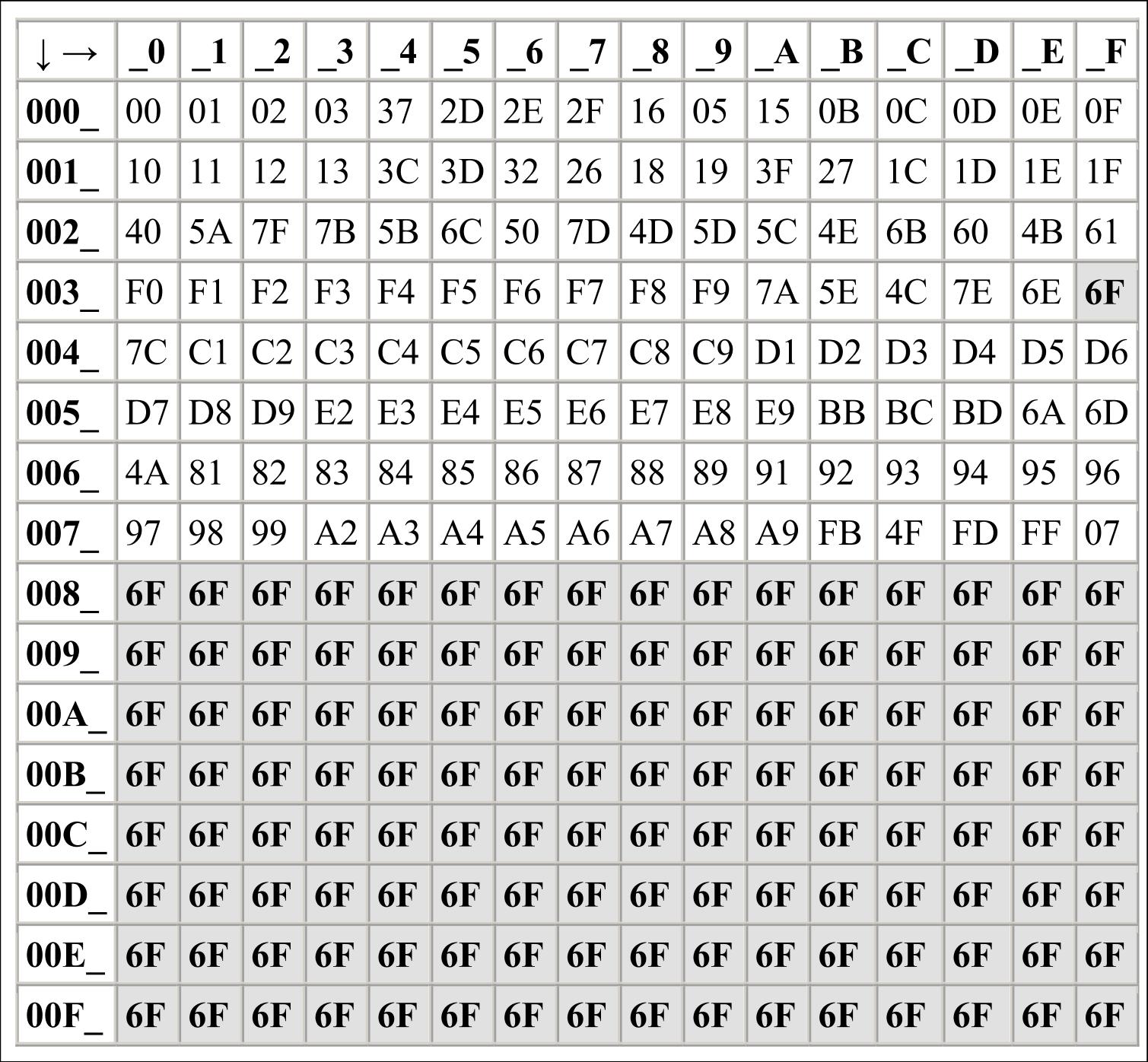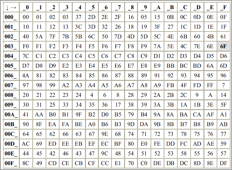 the x and y axes indicate the relevant 1-byte EBCDIC code