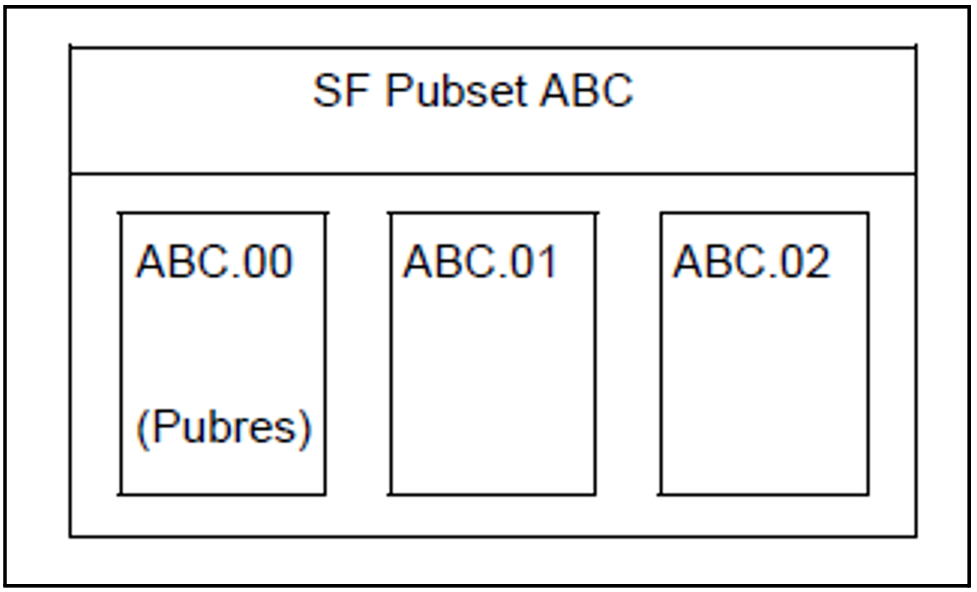 Ein Single-Feature-Pubset (SF-Pubset) besteht aus einer oder mehreren homogenen Platten, die in den wesentlichen Eigenschaften (Plattenformat, Allokierungseinheit) übereinstimmen müssen. Die Platte mit der Nummer 0 ist die so genannte Pubres. Die Pubres ist die obligatorische Systemplatte eines SF-Pubsets. Sie enthält u.a. ein Verzeichnis der zum Pubset gehörenden Platten und einen Verweis auf den Beginn des Dateikatalogs TSOSCAT.