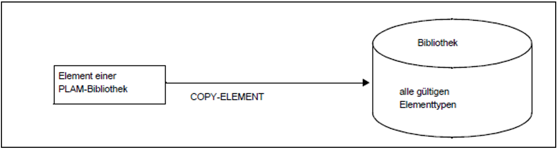 Die Anweisung COPY-ELEMENT (siehe "COPY-ELEMENT - Element kopieren") kopiert Elemente von der Eingabebibliothek in die Ausgabebibliothek und legt sie dort, falls gewünscht, mit einer anderen Elementbezeichnung ab: