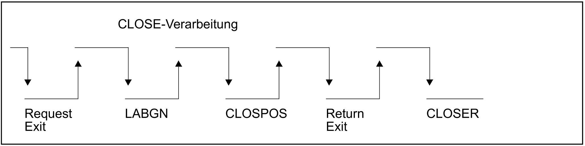 Die obenbeschriebenen Exit-Routinen und die bei der CLOSE-Verarbeitung anschließbaren EXLST-Ausgänge werden, falls vorhanden, in der nachfolgend gezeigten Reihenfolge aktiviert.
