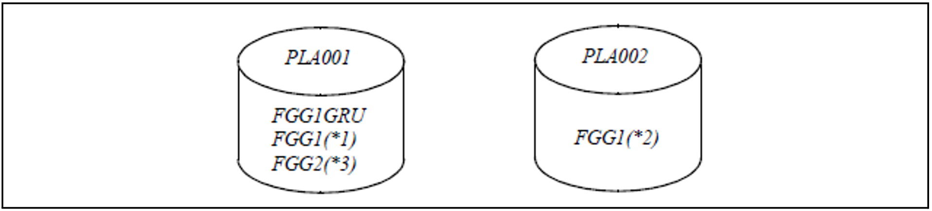 Das Kommando EXPORT-FILE VOLUME=PLA002 löscht den Eintrag der Generation DGG1(*2) aus dem Dateikatalog, die Generationen *1 und *3 bleiben nach wie vor katalogisiert: die Dateigenerationsgruppe hat ein „Loch“ bzgl. der Katalogeinträge; auf den Platten ist die Dateigenerationsgruppe vollständig.