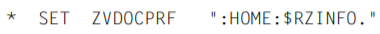 Die Änderung der Voreinstellung für die Ablage der Dokumentationsdateien wird im statischen Teil vorgenommen. Dazu muss die Voreinstellung des Parameters ZVDOCPRFgeändert werden in: