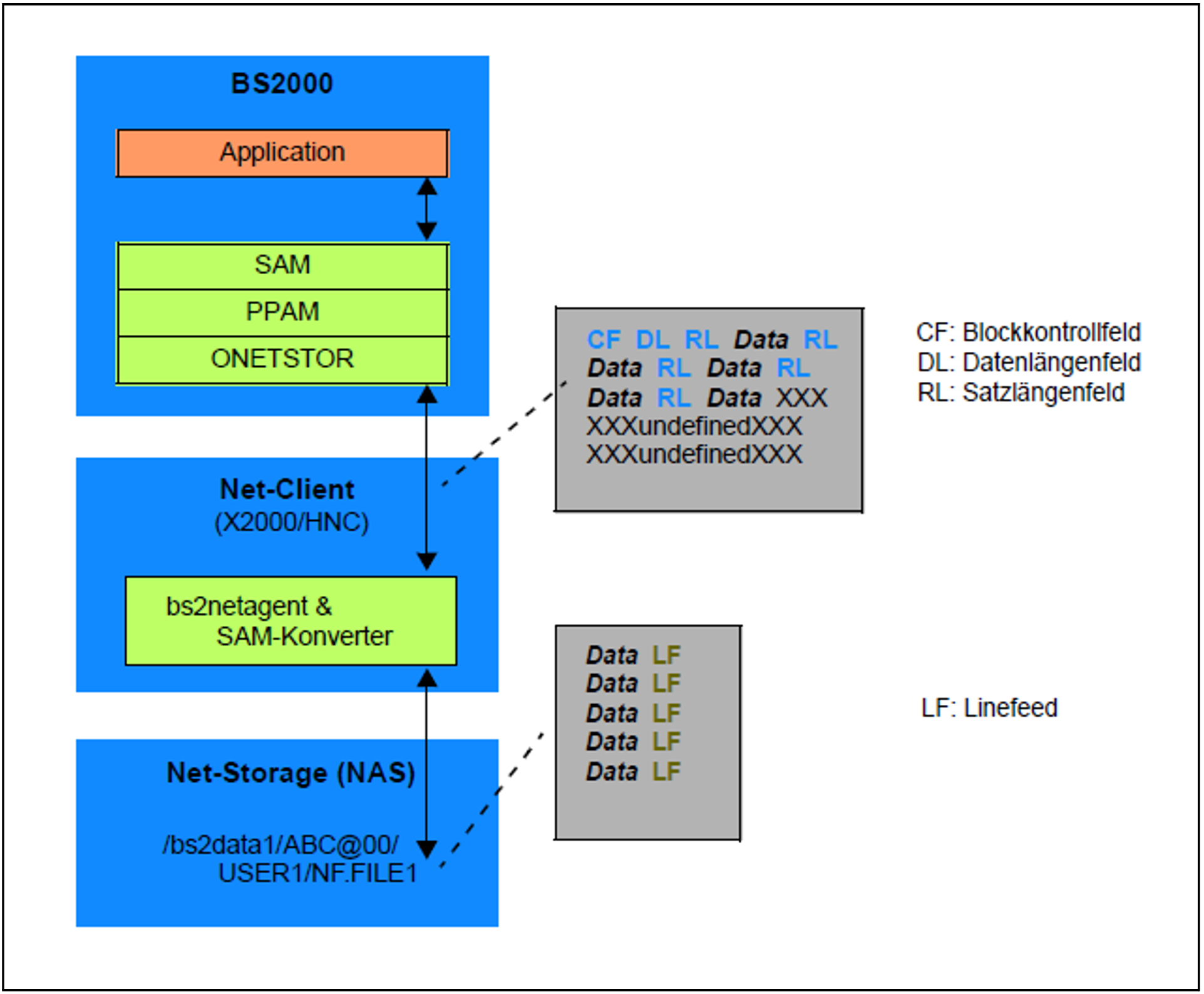 Der SAM-Konverter modifiziert einen logischen SAM-Block während des Schreibens bzw. Übertragens von BS2000 auf Net-Storage wie folgt: