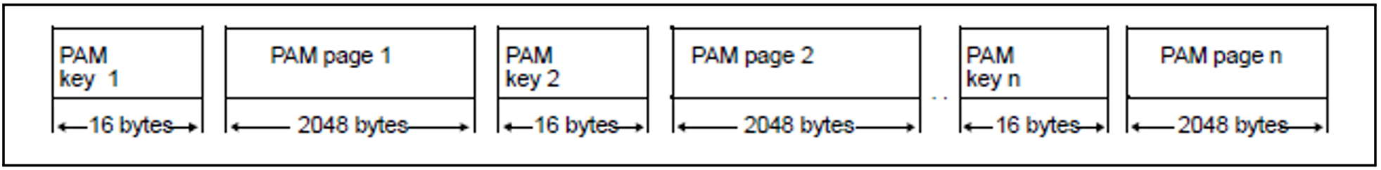 All n * 2048 bytes of the data block are available for user data, since the DMS management information is stored in the 16-byte PAM key. The PAM key has the following structure: