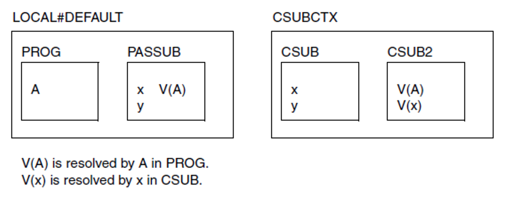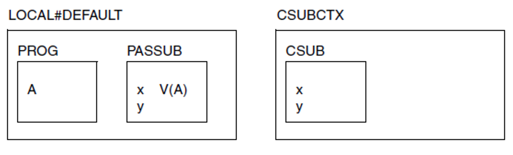 BIND SYMBOL=CSUB2,LIBNAM=...,...,LNKCTX=CSUBCTX,REFCTX=LOCAL#DEFAULTResult