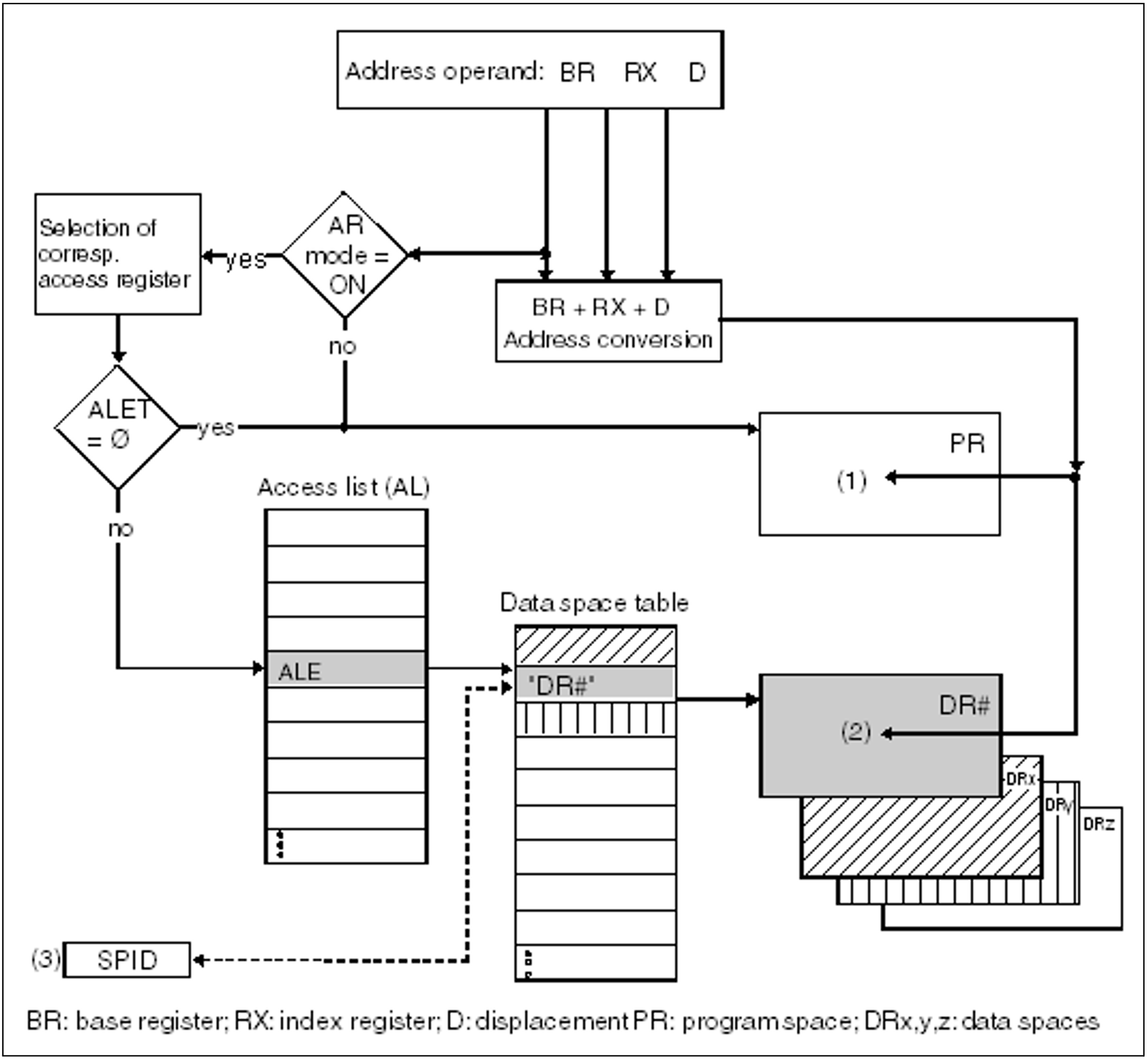 register != 0, it refers to a data space and the virtual address of this data space is converted. If the access register = 0, a virtual address of the program space is converted.