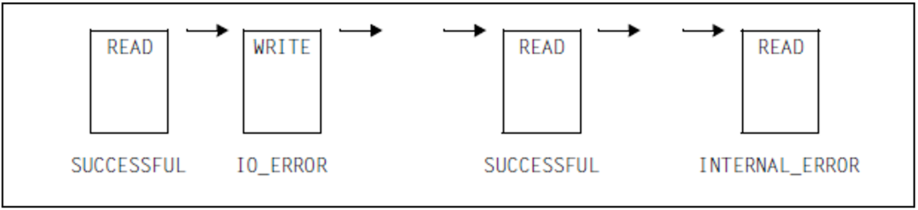 If an error occurs in a chain of asynchronous I/Os with eventing after all I/Os have been initiated (e.g. an “IO_ERROR”), each job is handled separately. A “CHAIN_ERROR” cannot occur.Since each I/O is on a file that is opened with “eventing”, reads and writes may be freely exchanged: