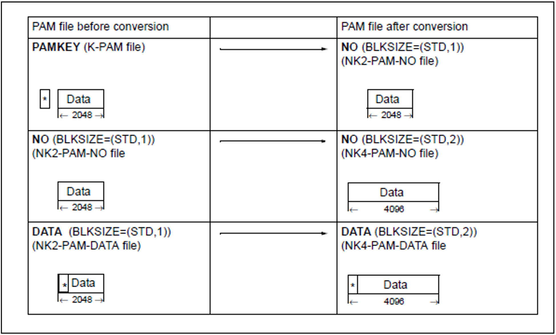 One of the functions of the PAMCONV routine is to convert files from K format to NK format (and vice versa). File format conversion is performed using statements, specifically the CONVERT-FILE statement.