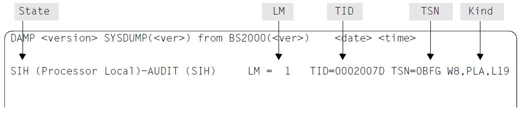 In addition to the hardware AUDIT, there is also the linkage AUDIT in processor-local (SIH or SIH+TPR) and task-local (TPR and TU) forms. The AUDIT tables are selected by DAMP after the command SHOW-EDITED-INFORMATION INFORMATION=AUDIT-TABLE-EDIT in the sequence “task-local hardware AUDIT (TPR) -> task-local hardware AUDIT (TU) -> tasklocal linkage AUDIT (TPR) -> task-local linkage AUDIT (TU) -> processor-local linkage AUDIT. The first table found is displayed.