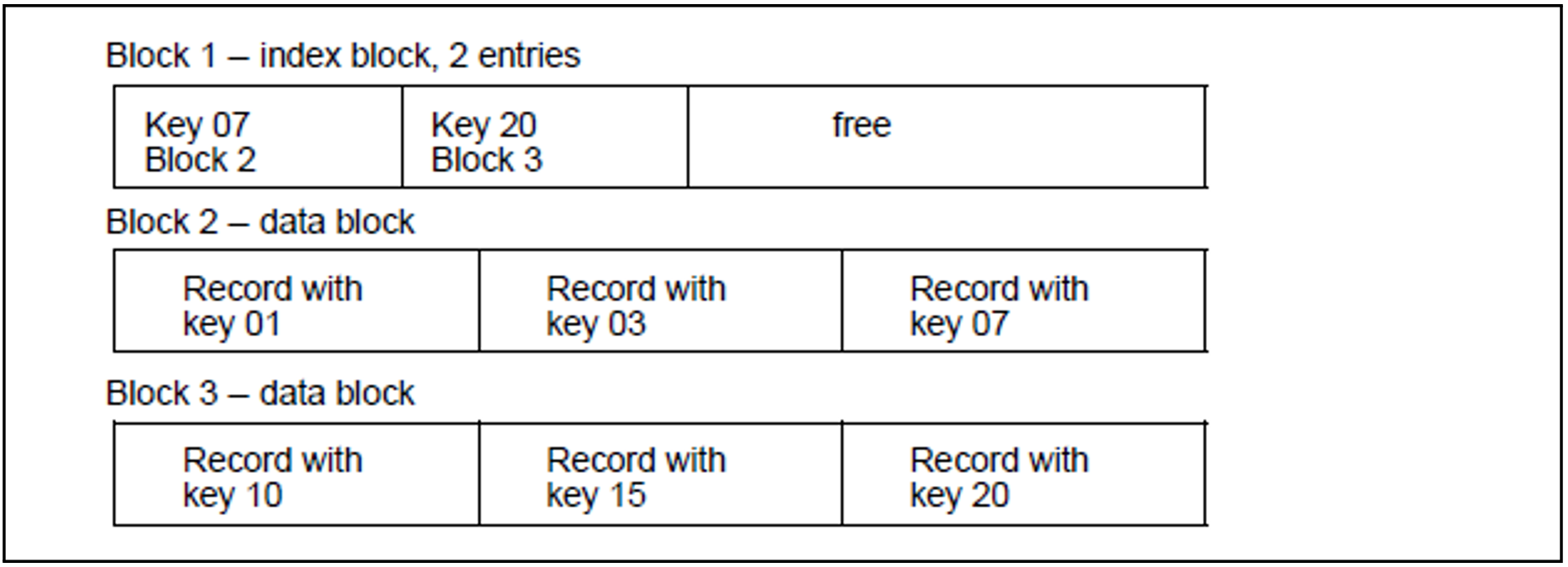 The records of an ISAM file are stored in data blocks, sorted according to the order of their ISAM keys (primary keys). Each of these blocks may consist of 1-16 contiguous PAM pages; a data block consisting of more then one PAM page is also called a multiblock.