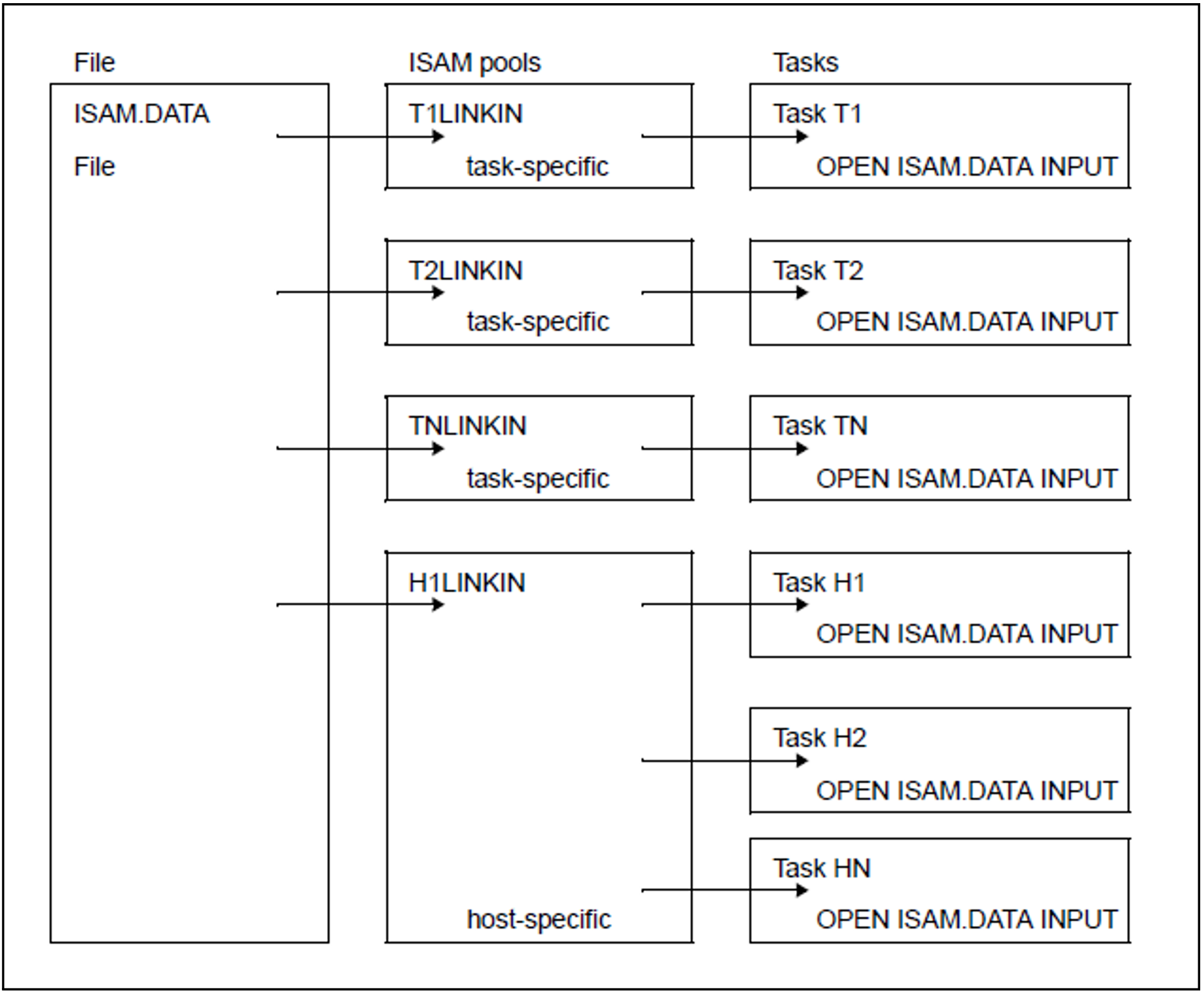 A file is used as an input file: it can be assigned to any number of task-specific ISAM pools and to only one ISAM pool that is not task-specific.