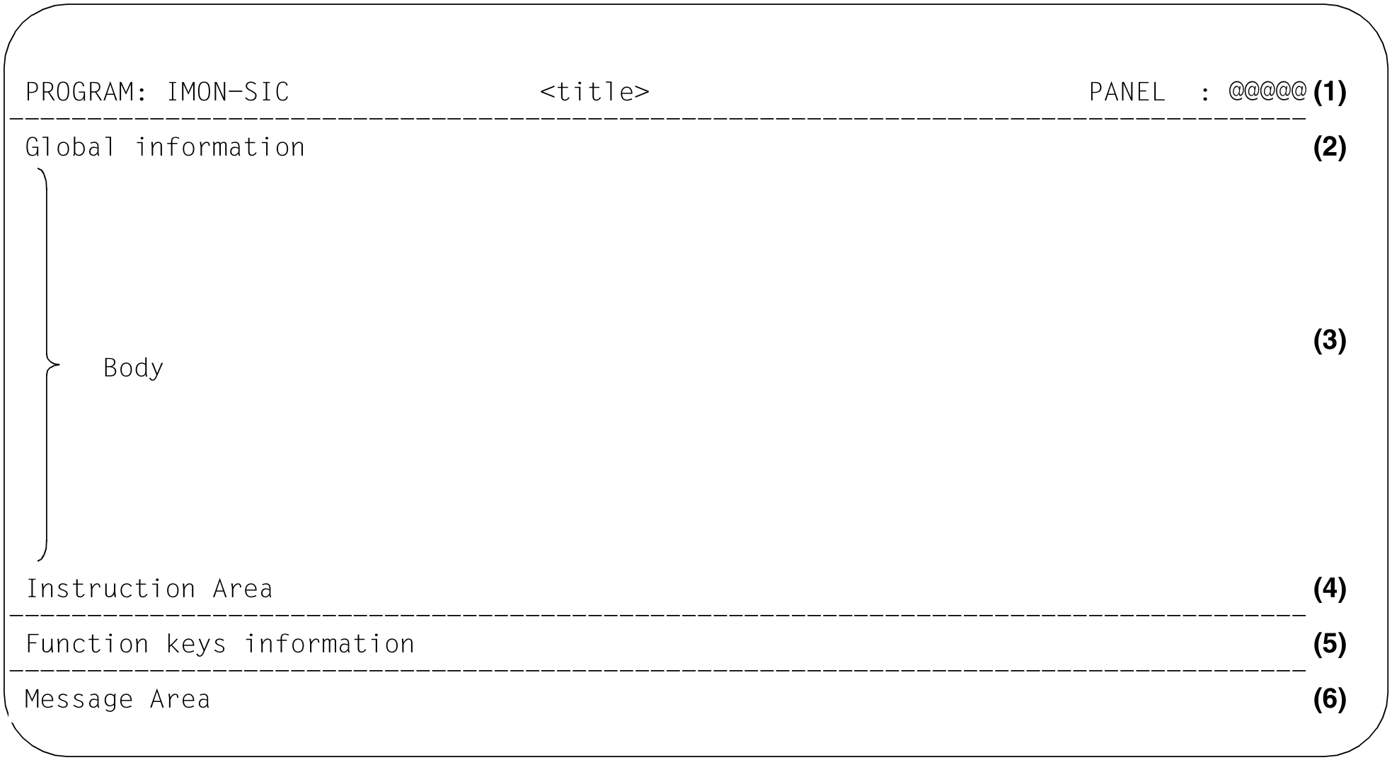 Information, warnings and messages are displayed in the message area. Messages from IMON-SIC start with the prefix IMO8. A warning begins with the word Warning. If an error message is output, the cursor is positioned on the first invalid field.