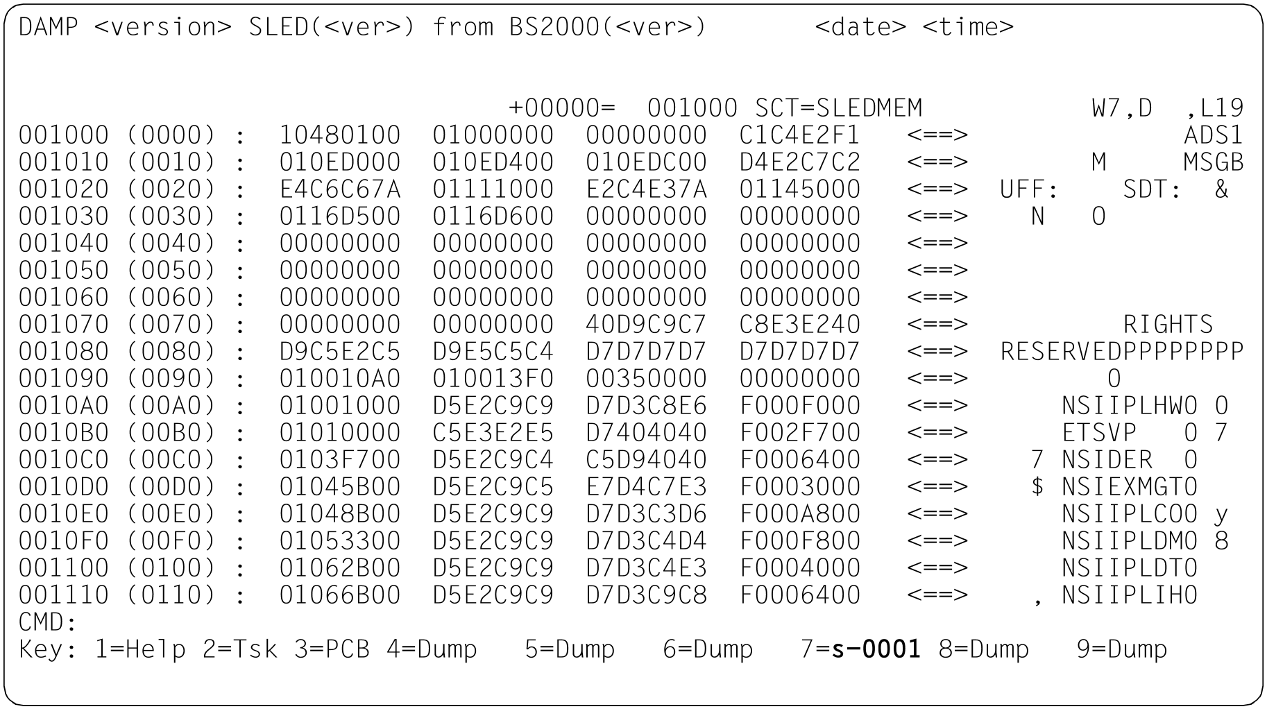 Figure 39: Output of the SLEDMEM dump file section; s-0001 is shown in the key line