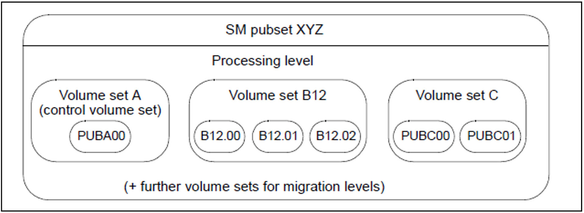 An SM pubset consists of one or more volume sets. Each volume set must be