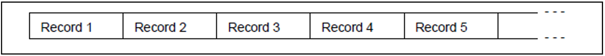 All records of the file have the same length, which is stored in the file's catalog entry. Since the system already knows the record length, the user does not have to worry about a record length or control field (see below) for input and output.