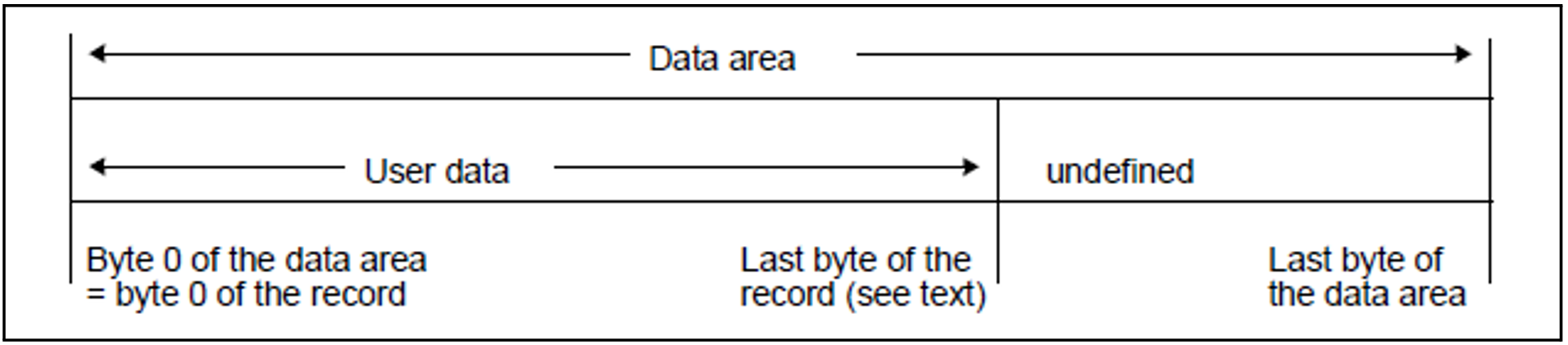 In variable-length records, there is always a 4-byte control field in front of the actual data, and the first two bytes of this field contain, in binary form, the length of the record, including the control field. The other two bytes of the field are reserved.