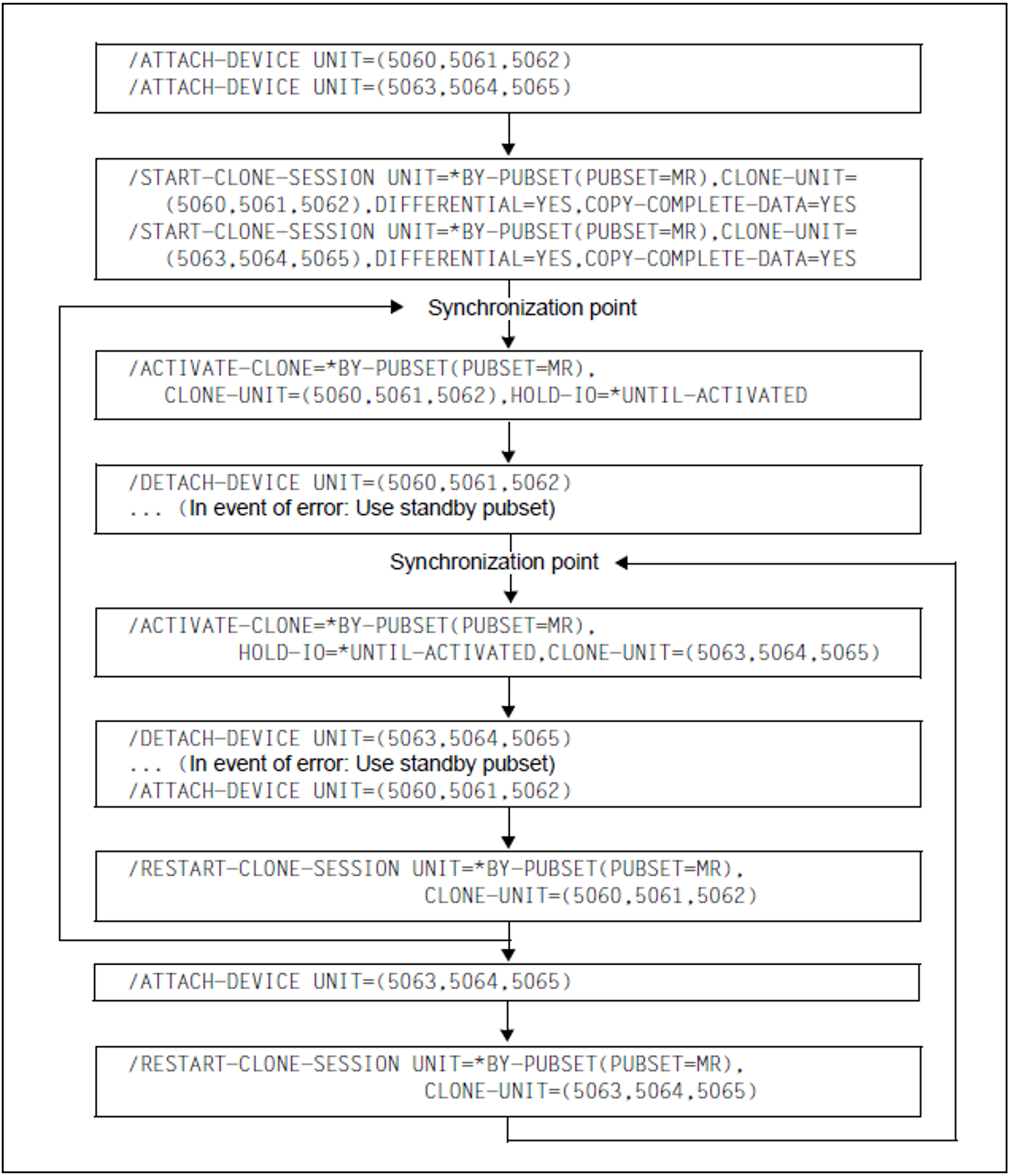 CLONE-UNIT=(5073,5074,5075),DIFFERENTIAL=YES,COPY-COMPLETE-DATA=YESCreate a synchronization point. This means: