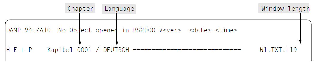 The help window is used to display information on the functions and operation of DAMP. This information is divided into chapters and sections, with the chapter currently on display being shown in the header line (“Chapter nnnn”).