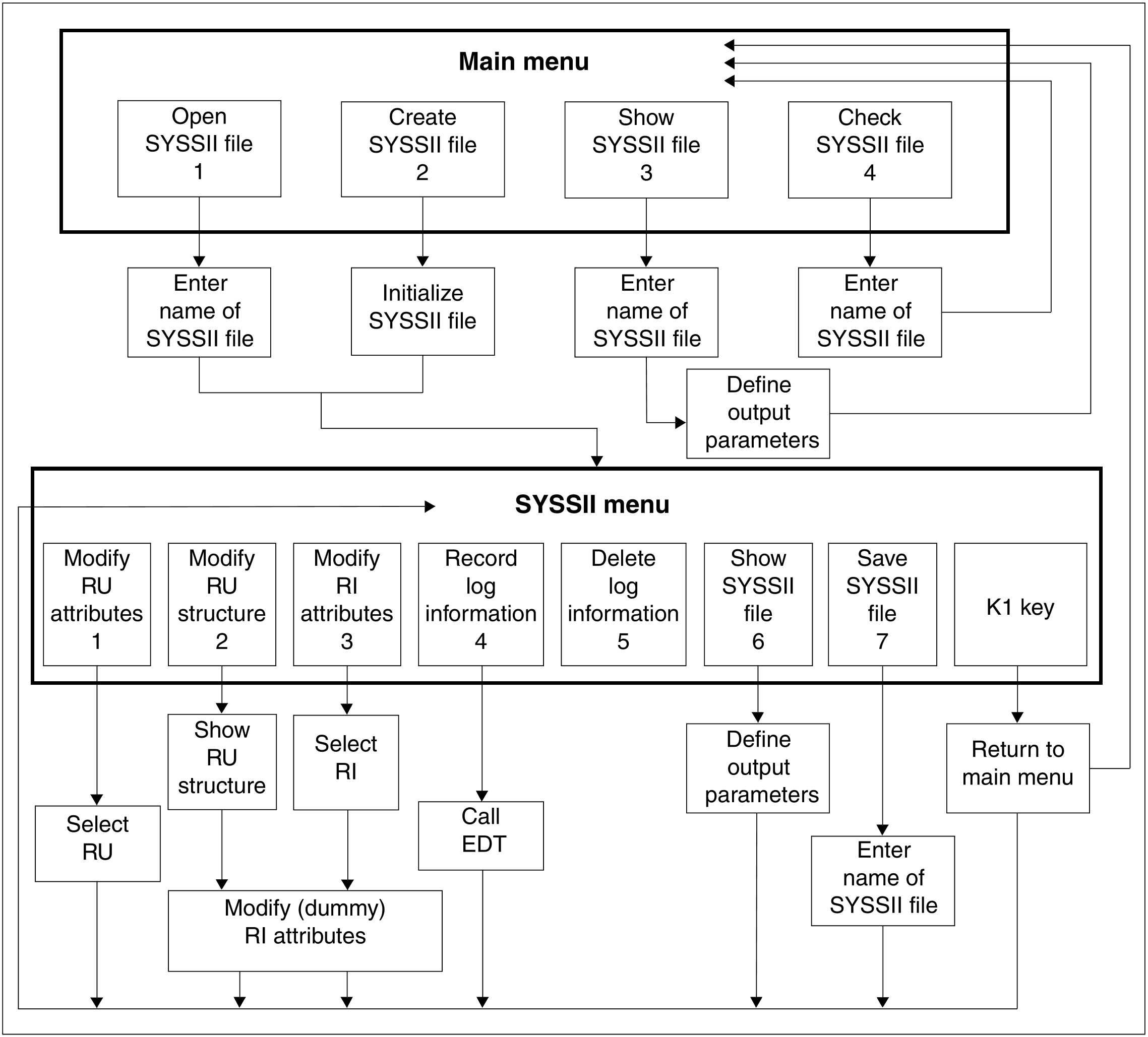 If you want to edit the SYSSII file, the next mask is the SYSSII menu. This mask enables you to select the editing steps.