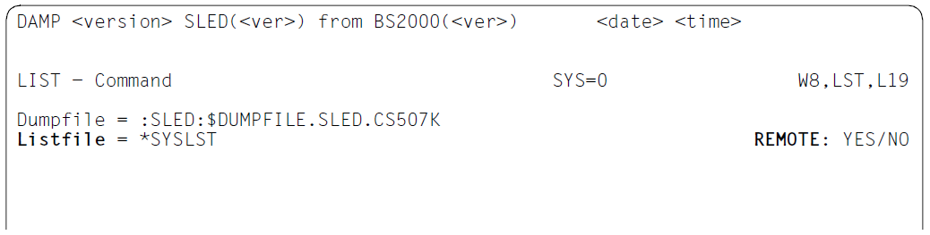 Zur Angabe des Ausgabeorts einer erzeugten Liste sind der Schalter REMOTE und das Feld „Listfile“ vorgesehen. Standardmäßig wird die Liste auf SYSLST am eigenen Rechner ausgegeben.