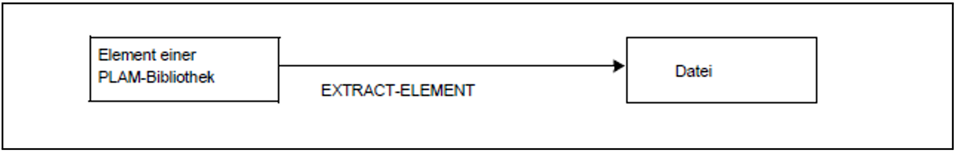 Die Elemente einer Bibliothek werden mit der Anweisung EXTRACT-ELEMENT (siehe "EXTRACT-ELEMENT- Elemente in Datei ausgeben") in eine Datei ausgegeben: