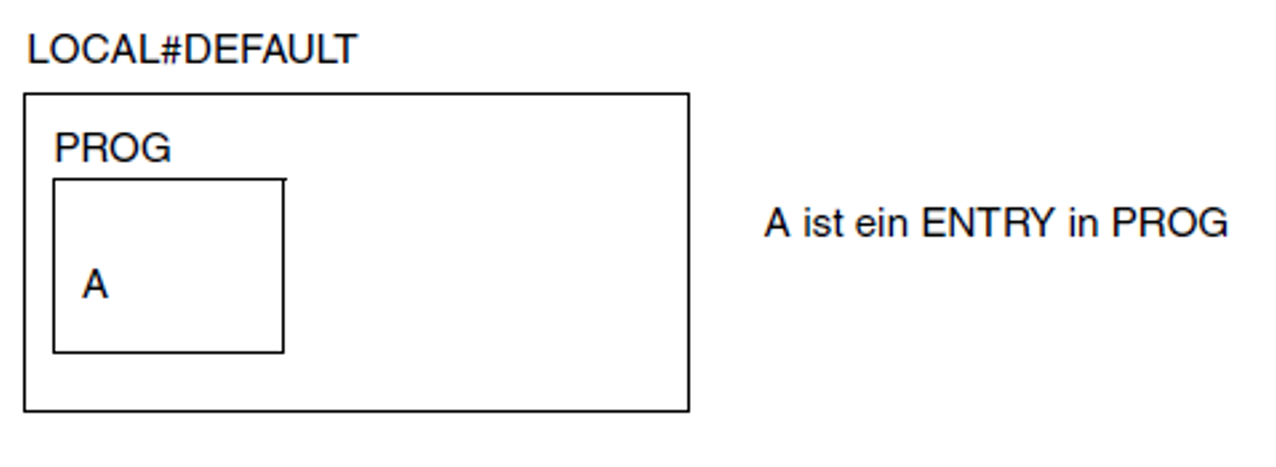 Ein Programm, dass in einer Programmbibliothek als Element mit dem Namen PROG abgespeichert ist, wird aufgerufen. Der DBL bildet zur Befriedigung von Externverweisen den Standard-Link-Kontext LOCAL#DEFAULT.