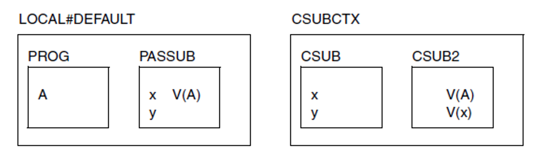 BIND SYMBOL=CSUB2,LIBNAM=...,...,LNKCTX=CSUBCTX,REFCTX=LOCAL#DEFAULTErgebnis