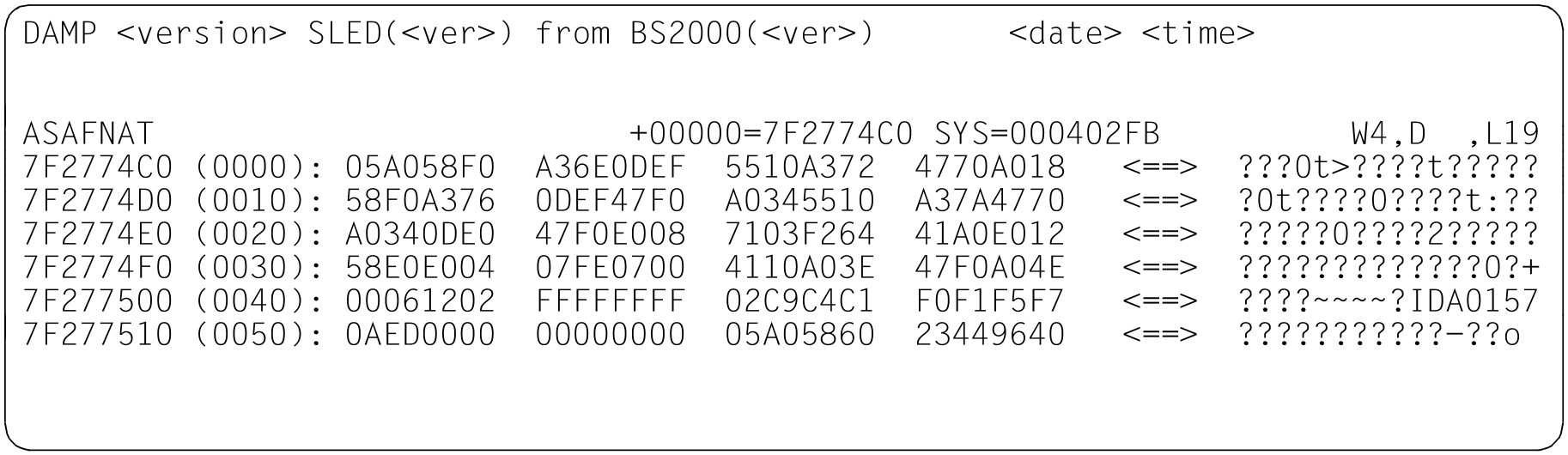 Diesen Fenstern kann der Benutzer verschiedene Funktionen zuordnen, voreingestellt ist die Nutzung als Standard-Dumpfenster für die aufbereitete Ausgabe von Speicherbereichen. Dies entspricht der Anweisung SHOW-EDITED-INFORMATION INFORMATION=*STORAGE-EDIT, WINDOW=<w>.