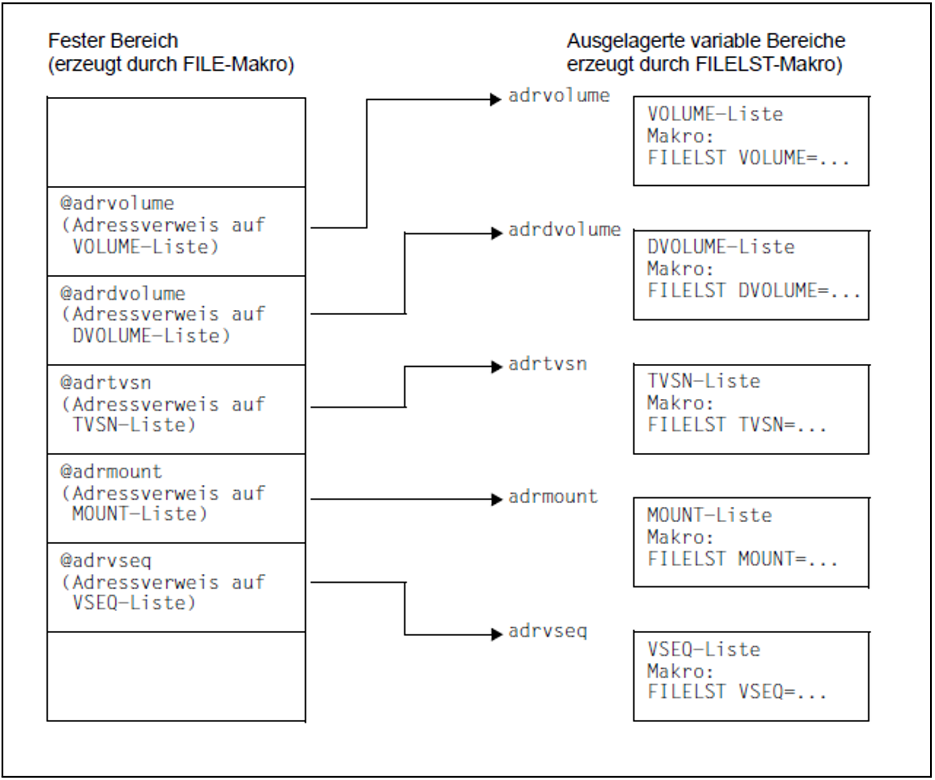 Mit dem FILE-Makroaufruf können – je nach Zugriffsmethode – Datenstrukturen definiert werden, z.B. Satzlänge, Blocklänge, usw.