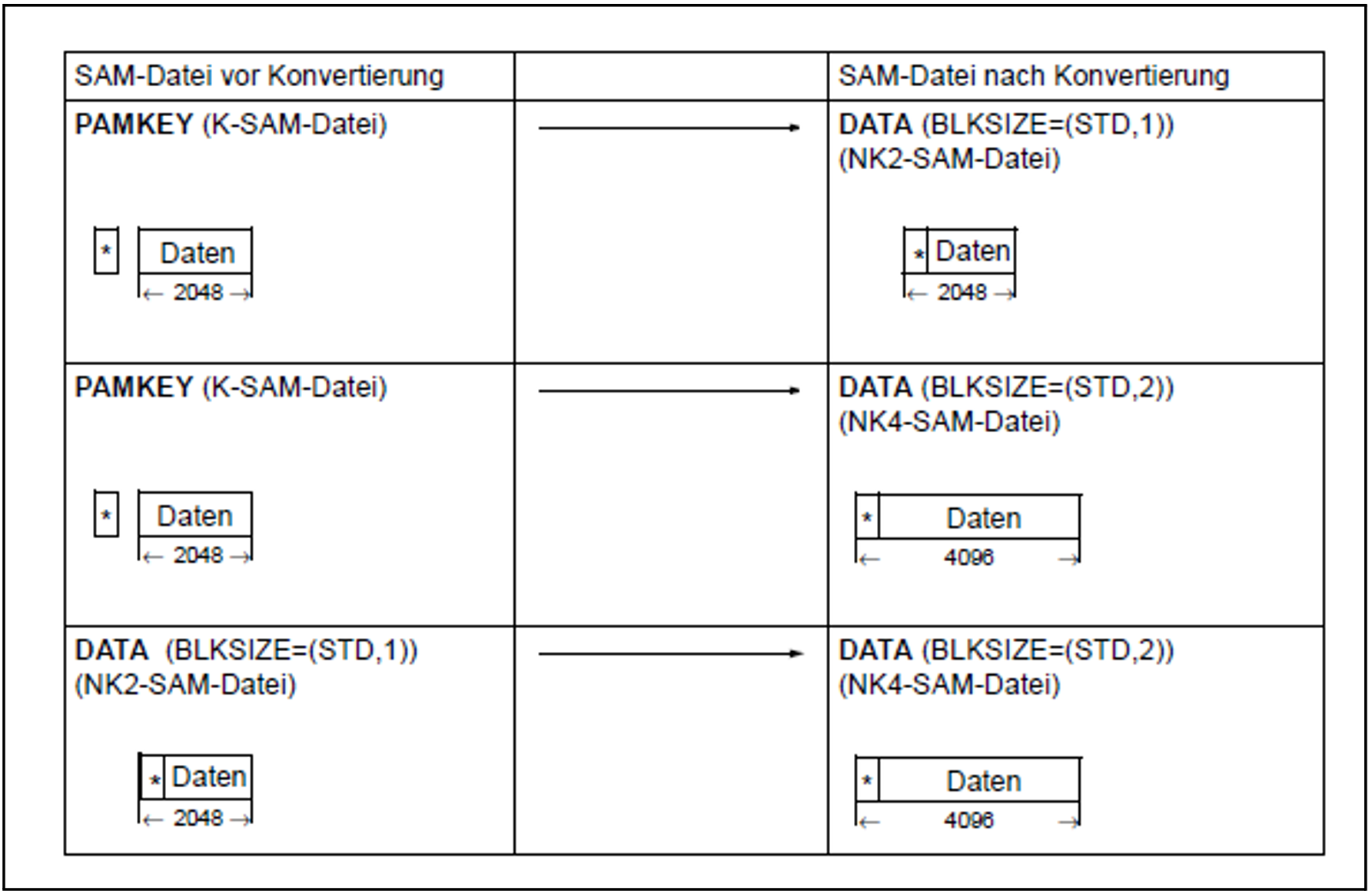 Eine SAM-Datei, die mit PAMCONV konvertiert werden soll, kann in den folgenden zwei Blockstrukturen vorliegen: