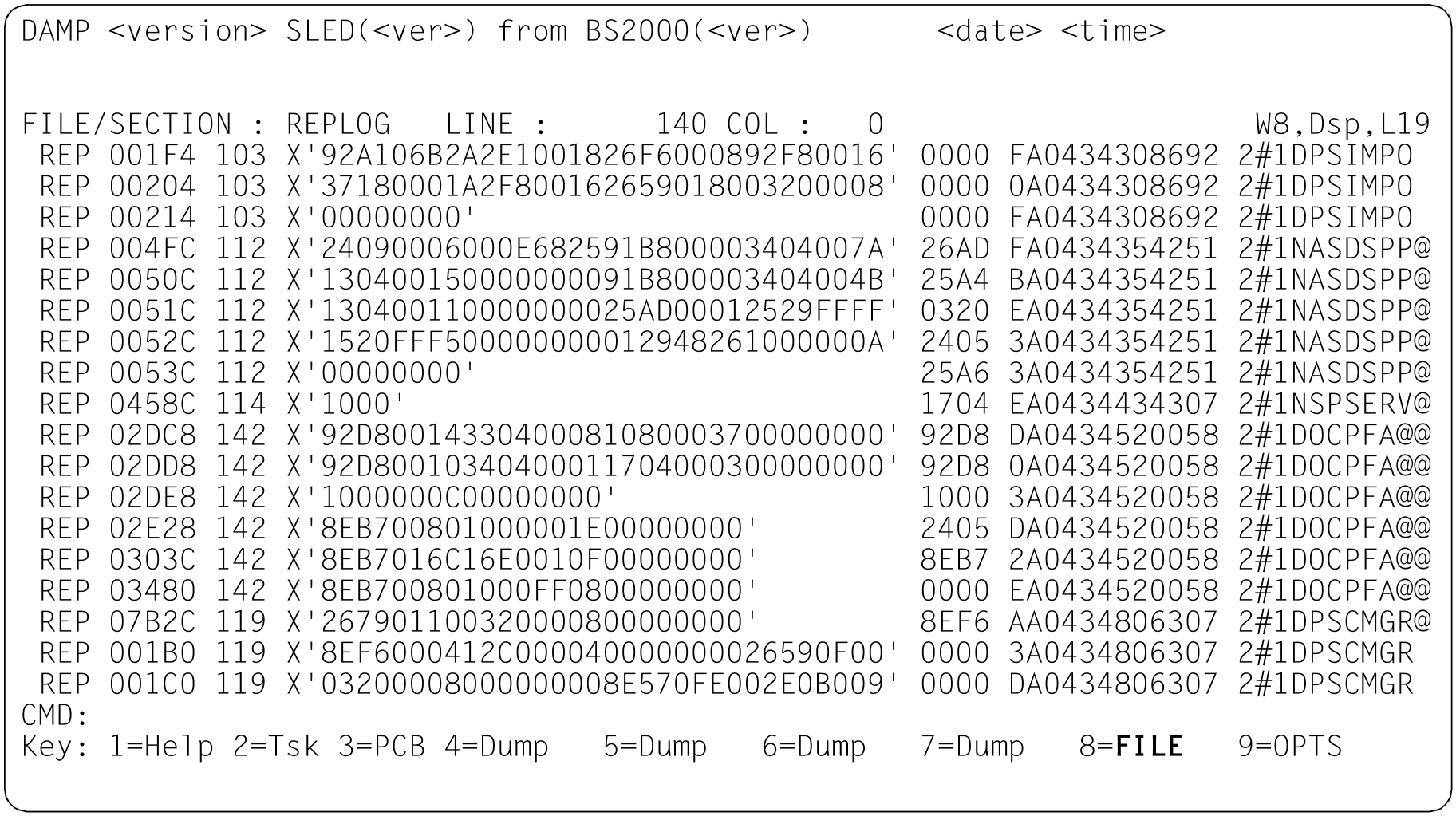 Bild 50: Layout des FILE-Fensters nach Auswahl der Systemdatei REPLOG ab Zeile 140