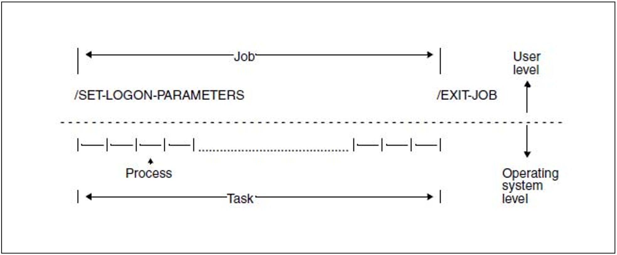 BS2000 kennt u.a. die Begriffe Auftrag (Job), Task und Prozess. Mit diesen Begriffen werden bestimmte Zustände und Aktivitäten einer dem Betriebssystem übergebenen Aufgabe bezeichnet.