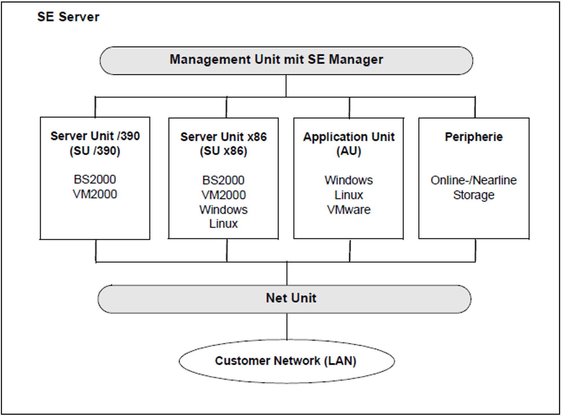 Ein Fujitsu Server BS2000 der SE Serie (kurz: SE Server) besteht im Maximalausbau aus folgenden Komponenten: