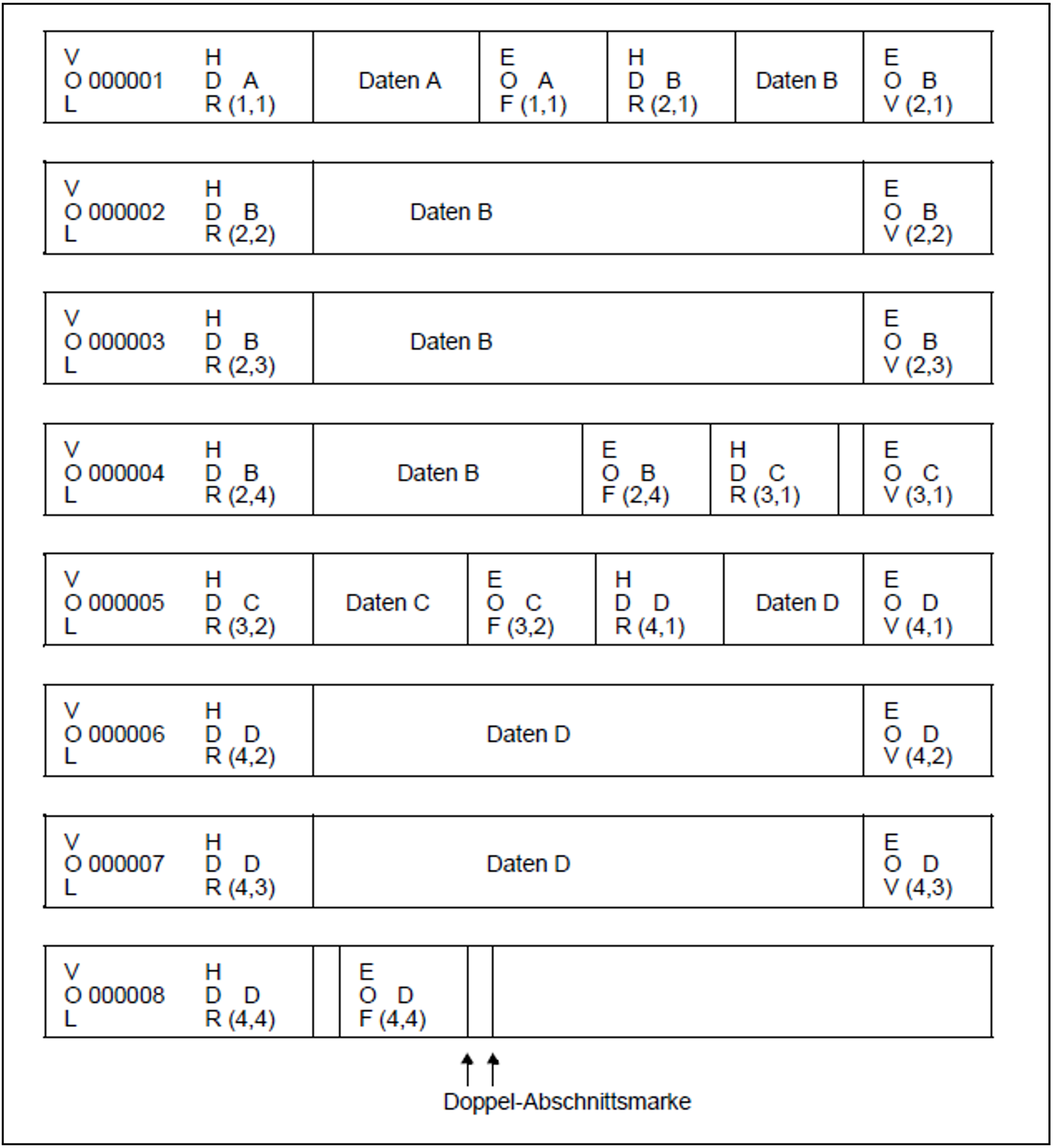 Die Datei C beginnt auf dem Band 000004 mit einem leeren Dateiabschnitt (siehe auch Bild 10 (Leere Dateiabschnitte)).