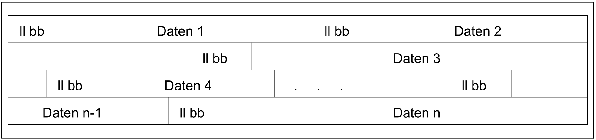 Die Adresse des Satzes und die Satzlänge werden in den Feldern IREC@ bzw. IRCLEN an die Exit-Routine übergeben. Der Satz enthält kein Satzlängenfeld.