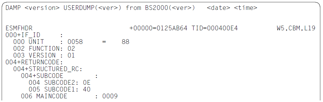 Bei der Ausgabe eines Kontrollblocks werden die Substrukturen zunächst ignoriert, d.h. die betroffenen Felder werden wie ein „ARRAY OF BYTE“ ausgegeben. Die Namen der Felder, die Substrukturen enthalten, werden durch ein vorangestelltes Zeichen „*“ markiert.