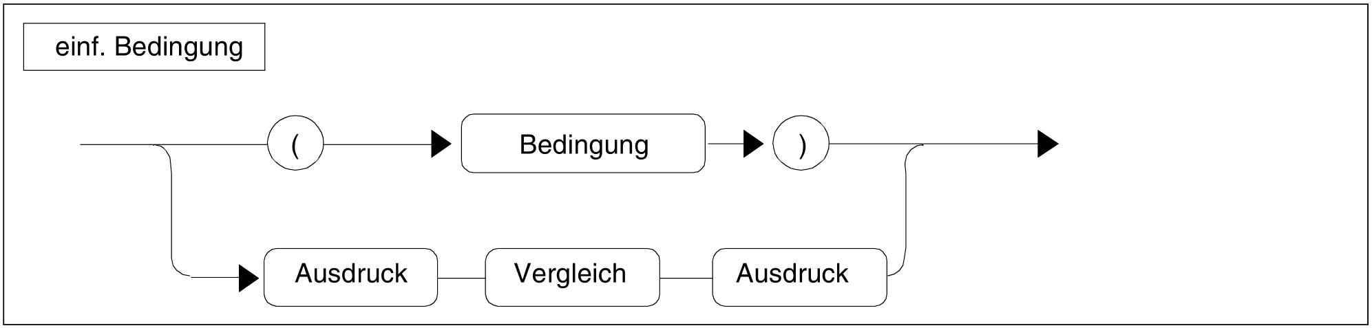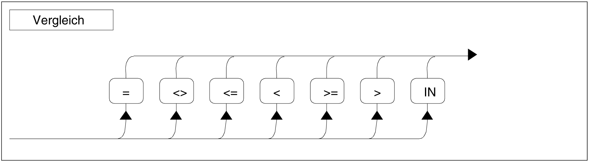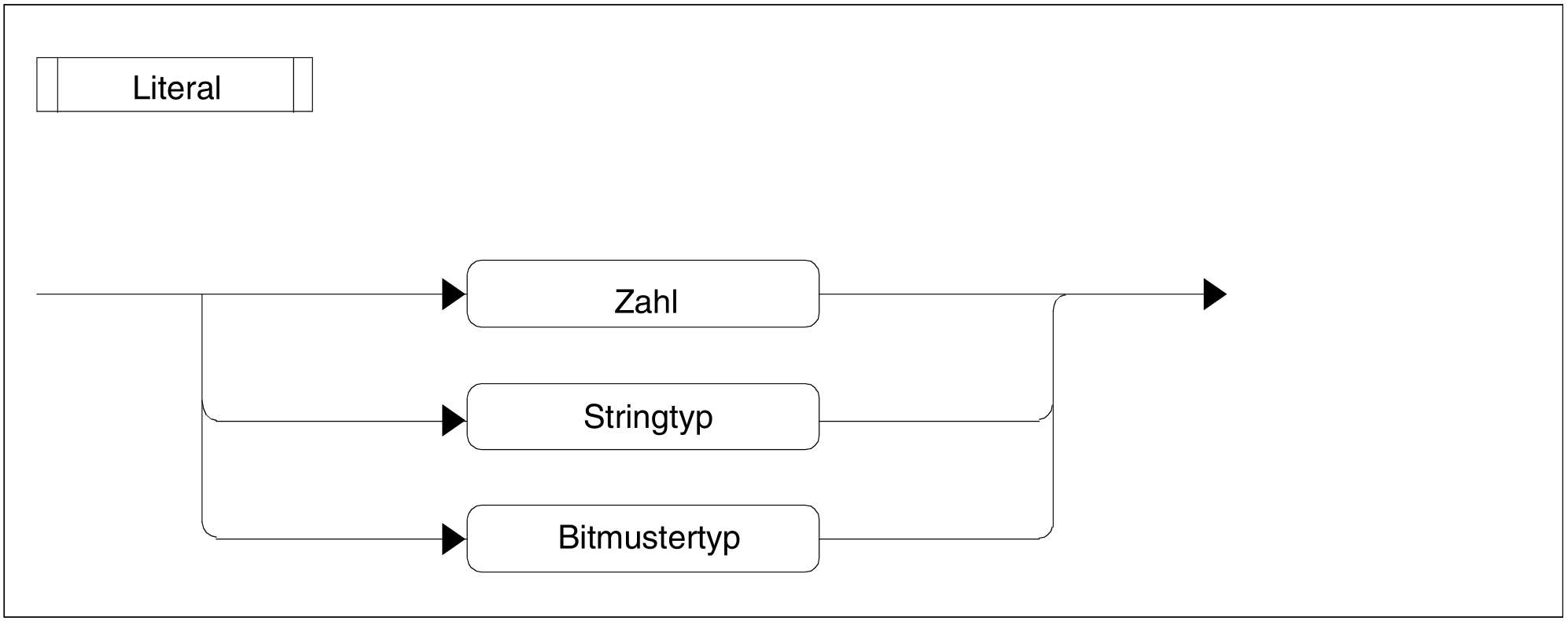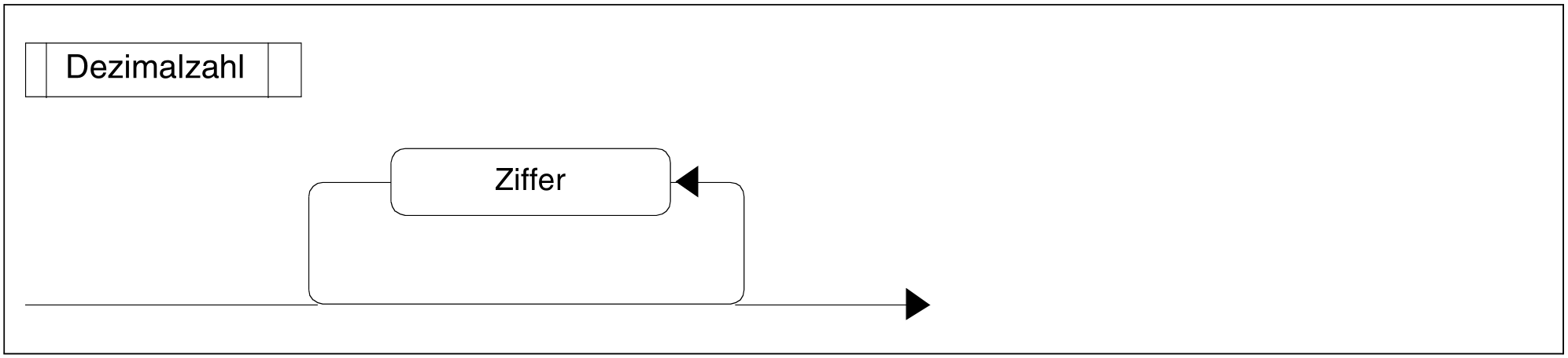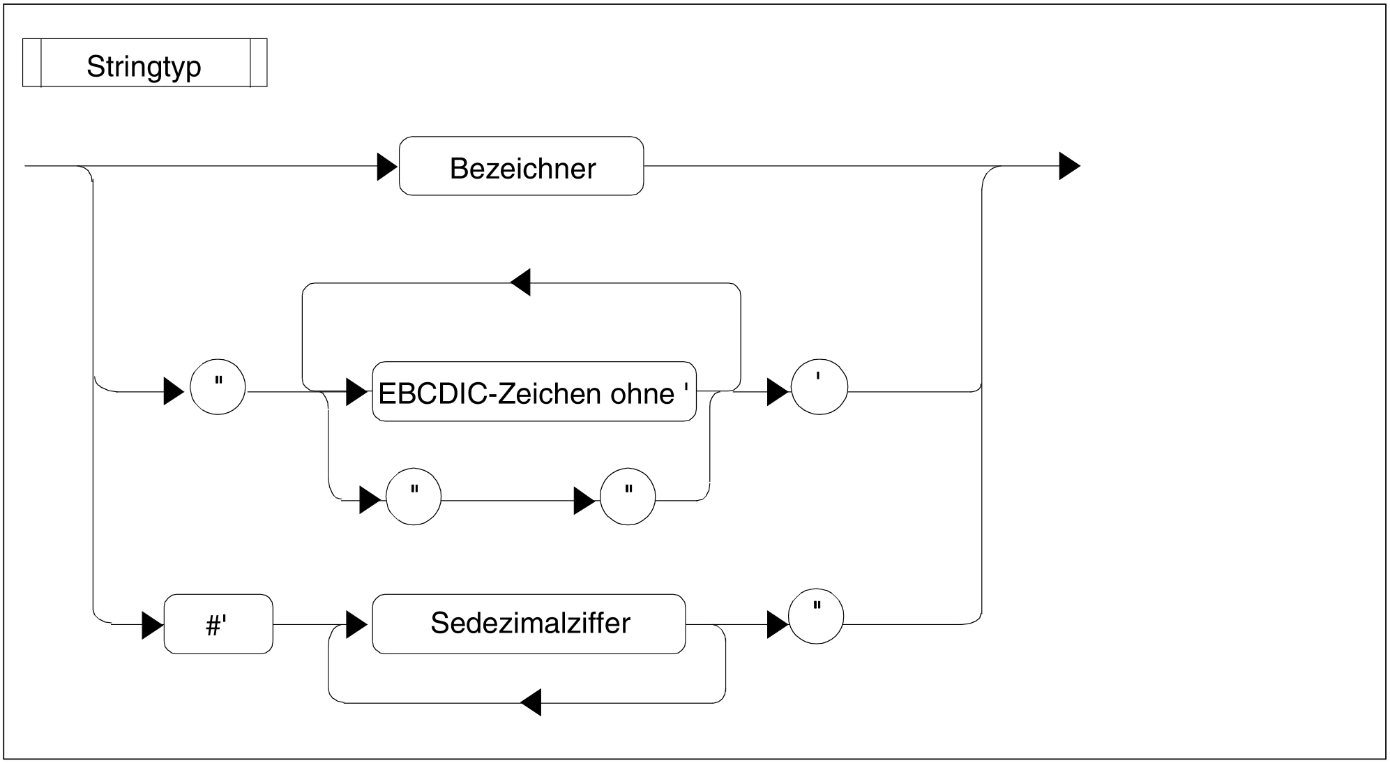 Um eine zu umfangreiche Darstellung der Diagramme zu vermeiden, gilt Folgendes: Verbindungslinien zwischen den Kartuschen repräsentieren ein Trennzeichen (siehe "Lexikalische Elemente"). Nur vor und nach einem Sonderzeichen darf das Trennzeichen weggelassen werden. In Diagrammen, deren Kopf mit Doppel-Linien umrahmt ist, dürfen keine Trennzeichen gesetzt werden.