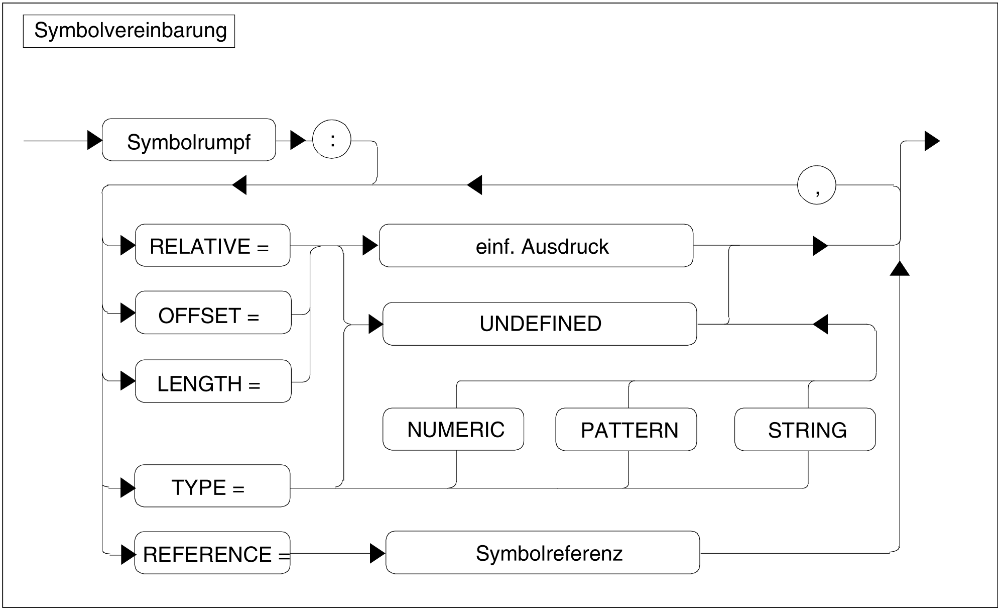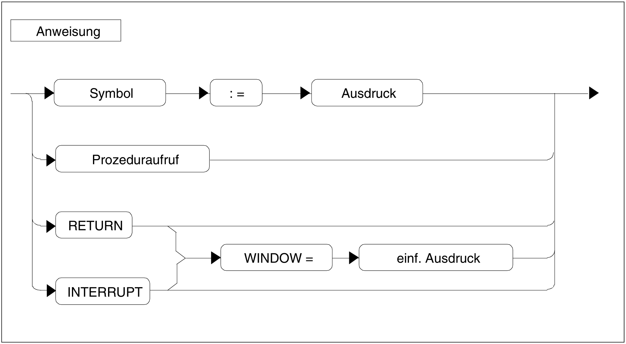 Der Einstieg in die Syntaxdiagramme erfolgt über den Begriff „PRODAMP-Prozedur“. Anschließend sind alle zur Definition der „PRODAMP-Prozedur“ benutzten Begriffe alphabetisch aufgeführt.