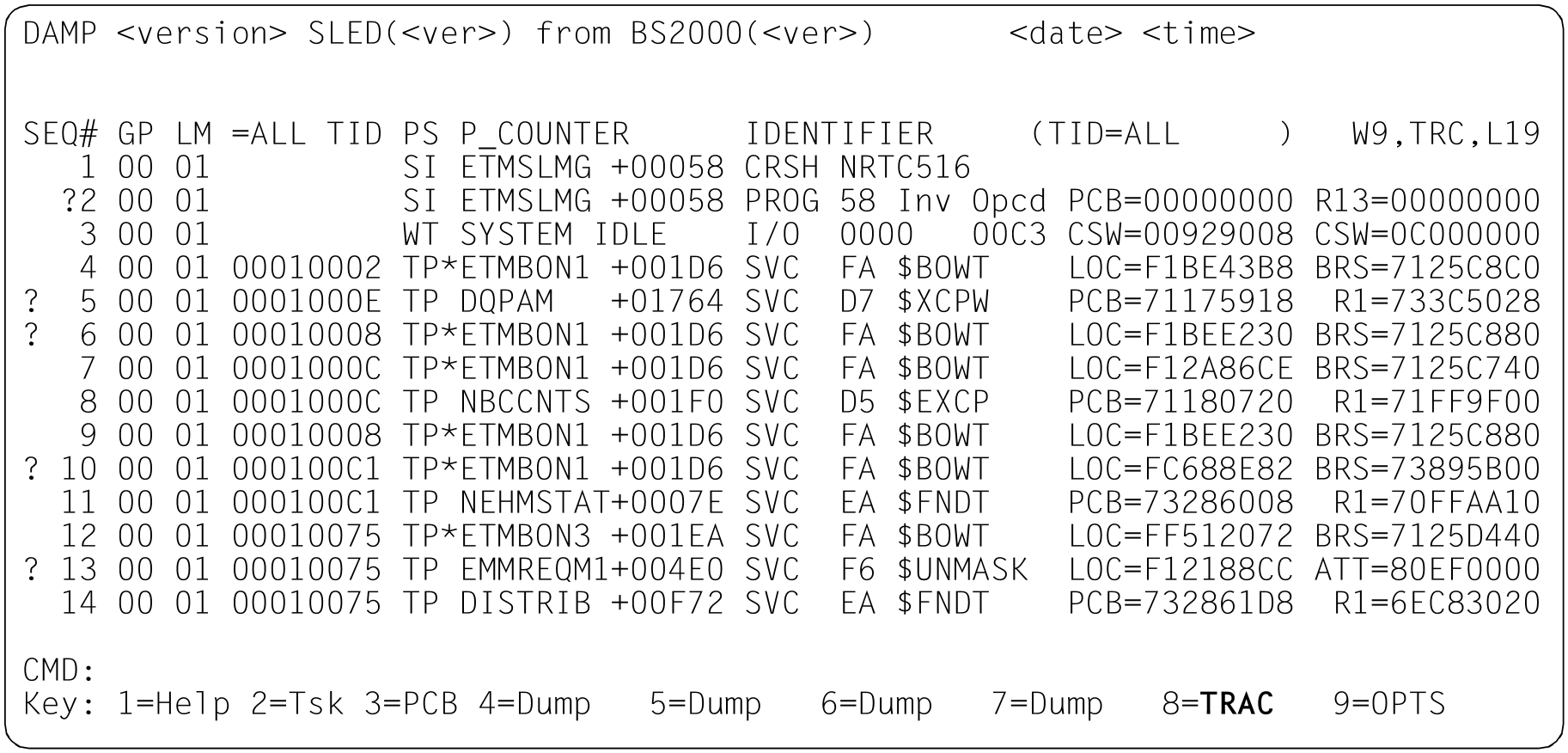 Mit der Sequenznummer wird die Adresse des System-Trace-Table-Eintrages markiert. Dies ist nützlich, wenn man sich den vollständigen Eintrag anschauen möchte.