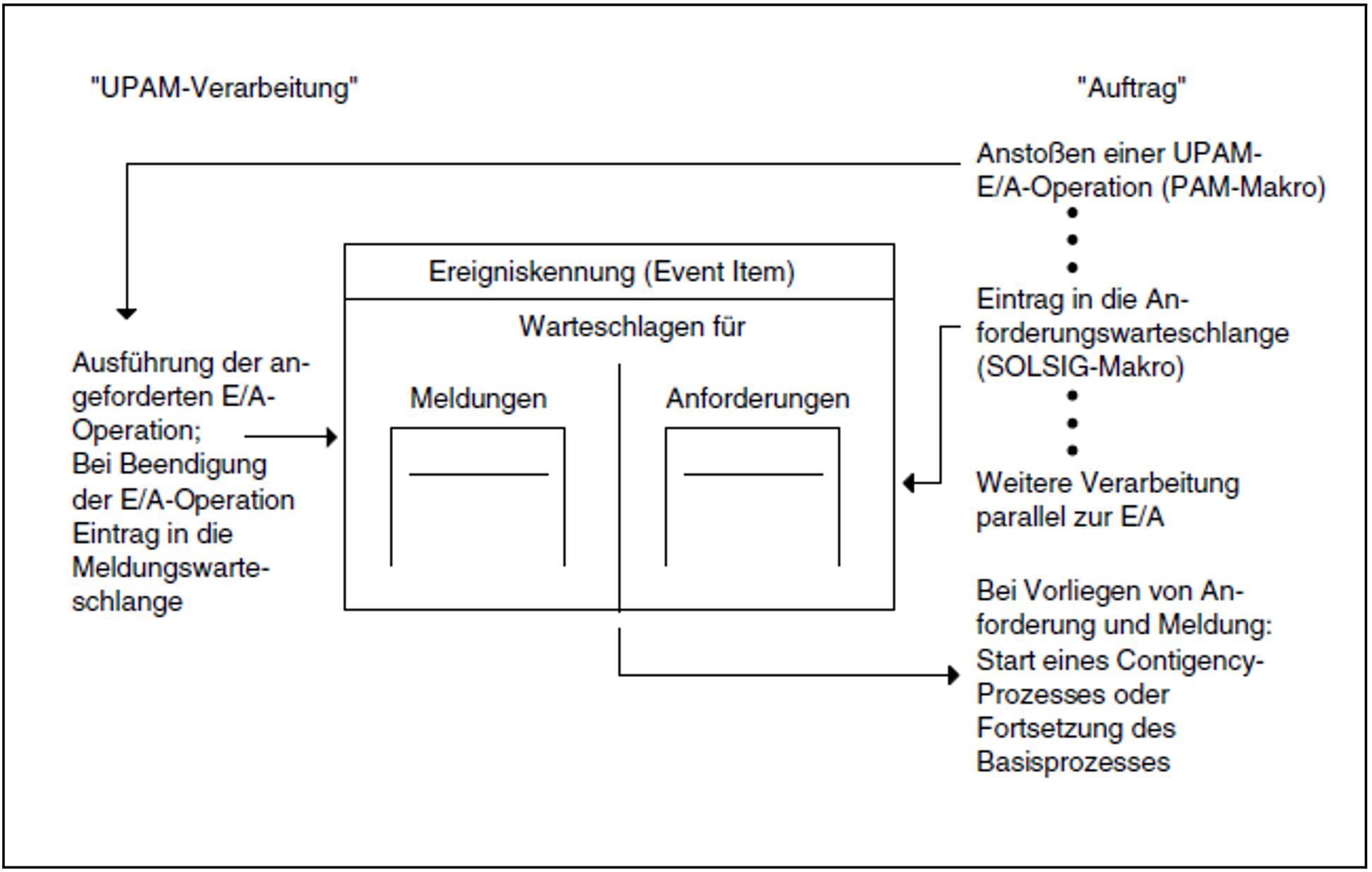 Ereignisgesteuerte Verarbeitung wird von UPAM dazu benutzt, einem Auftrag die Beendigung einer angeforderten Ein-/Ausgabe mitzuteilen. Der Auftrag kann