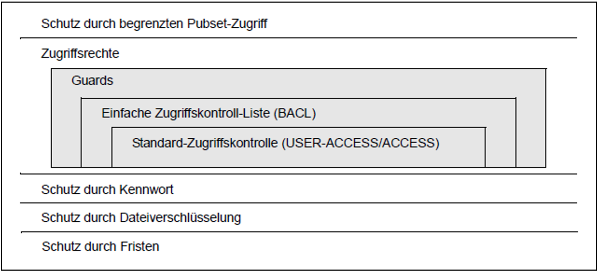 In allen Fällen gelten zusätzlich der begrenzte Pubset-Zugriff, der Kennwortschutz, die Dateiverschlüsselung und die Schutzfrist.