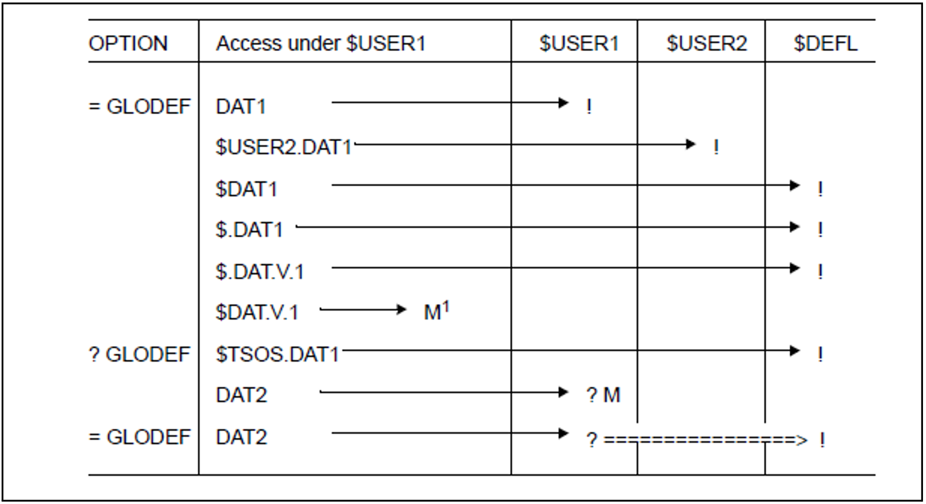 If a user wishes to access a file under the system default user ID, but does not place “$.” or “$” before the file name, DMS first searches for this file in the user's own user catalog, i.e. the user catalog belonging to the default user ID of the job. If this is unsuccessful, DMS automatically executes a secondary read (a second read access to the catalog belonging to the system default user ID) for commands such as START-PROGRAM and CALL-PROCEDURE.