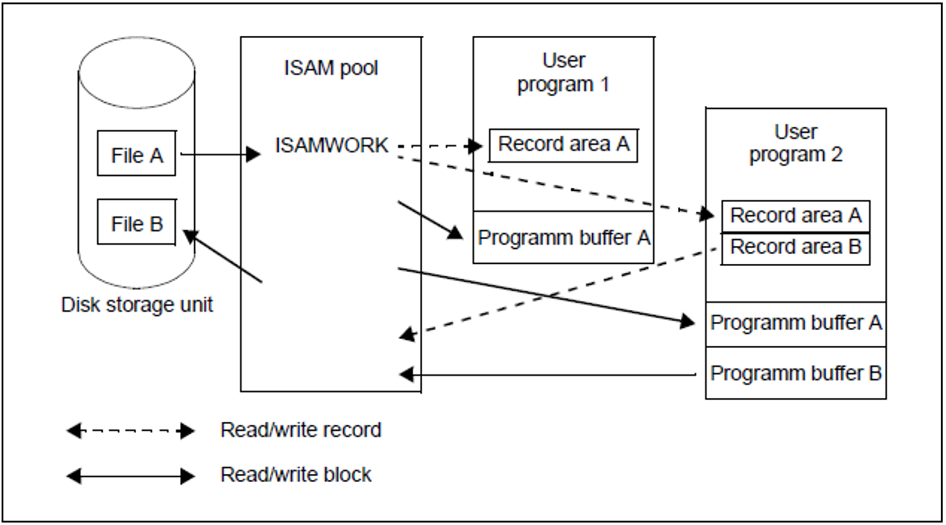 Particularly the non-sequential processing of ISAM files tends to produce a high I/O rate. NK-ISAM reduces this I/O rate and enhances the performance significantly by processing the files in appropriately sized ISAM pools which are used to buffer file blocks.